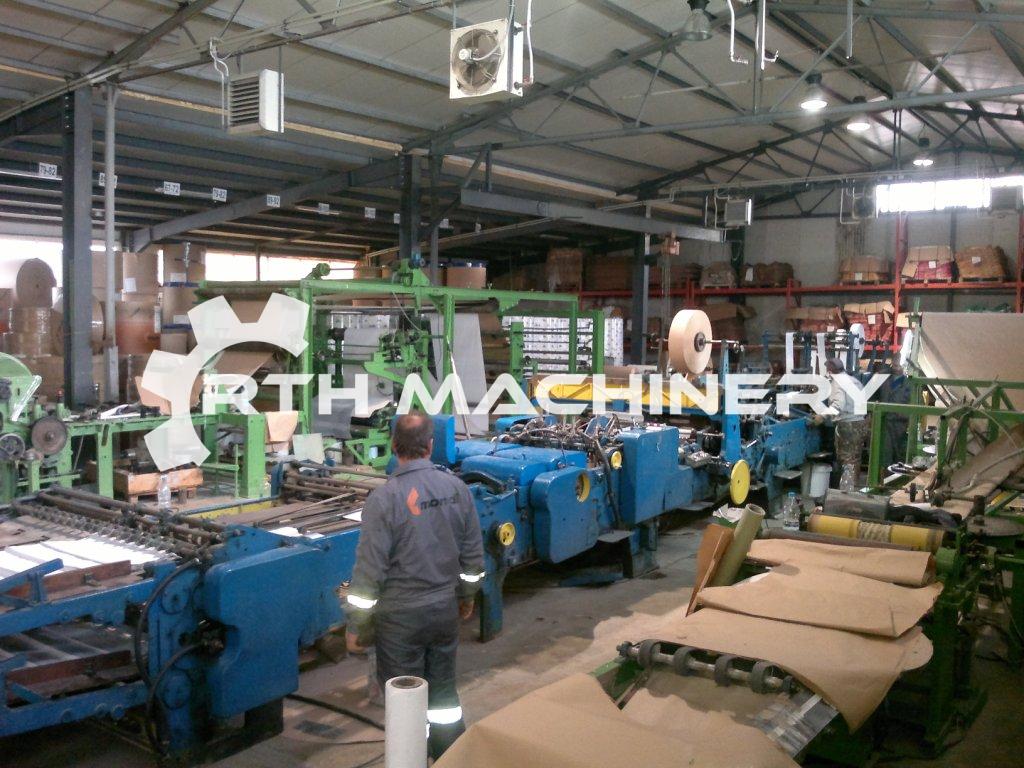 - -3 layer stand with krane system / take rolls from the ground/. 1 web guide unit with fife system .3 cross glue unit for 3 ply .2 microperforation unit .1 photocell system . 1 print unit with 2 colors / without printing rollers/ 1 glue unit with folding unit .1 cuting unit