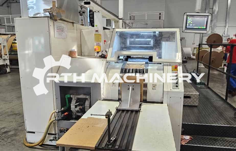 - Jumbo roll unwind, diameter 1300 mm, with motorized lateral adjustment, automatic web tension control, servomotor-driven brake for the paper undwind with suspended dancer roller, hydraulic reel lift-in, 1 pneumatic undwind shaft, diameter 76 mm.